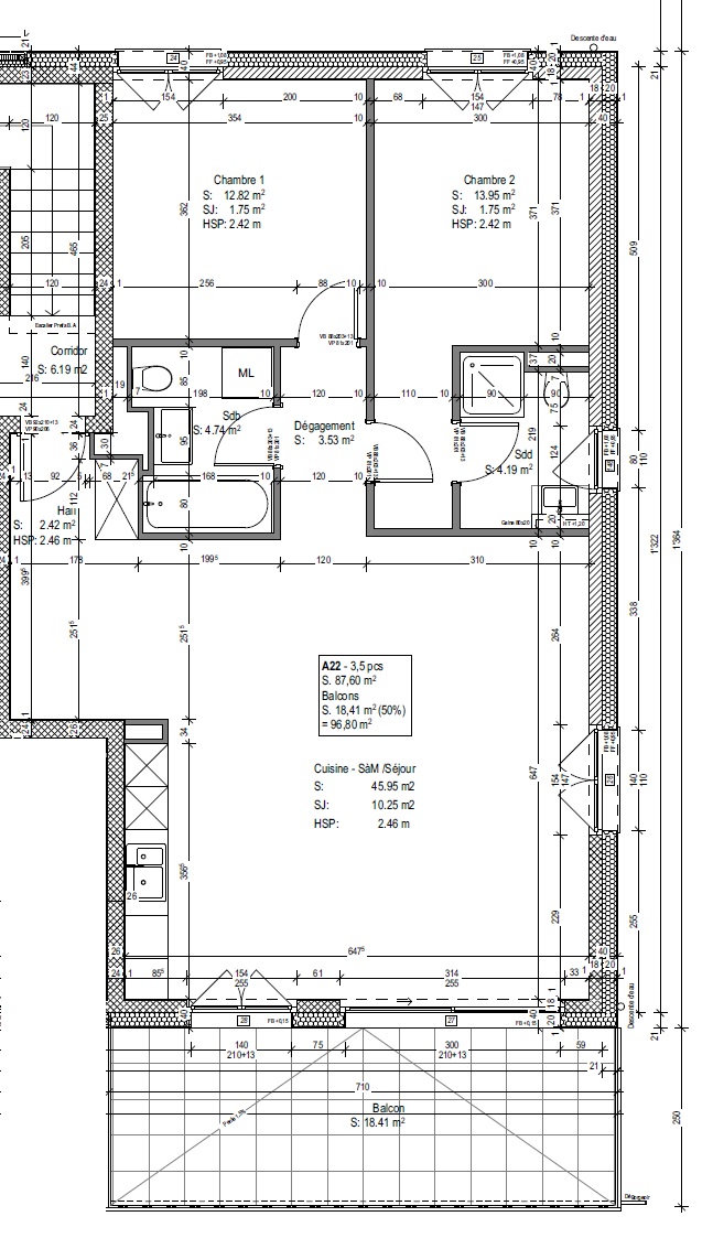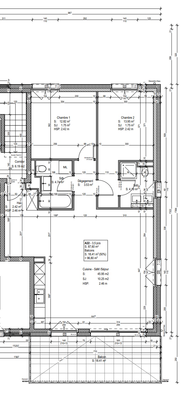 | A22 | 2ème | 3.5 | 89.51 m2 | 98.39 m2 | vendu | ||||