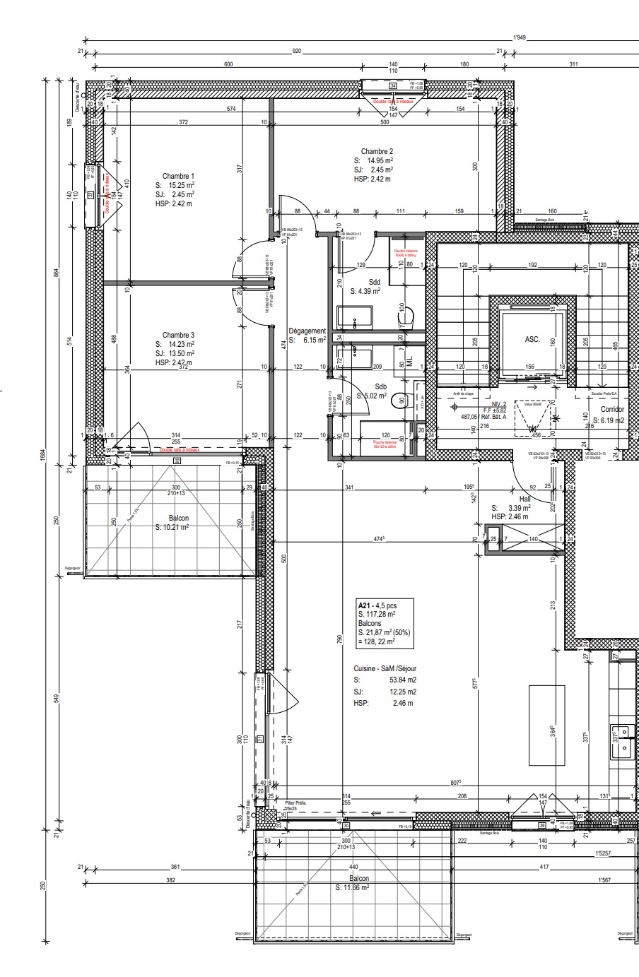 | D21 | 2ème | 4.5 | 111.41 m2 | 135.27 m2 | réservé | ||||