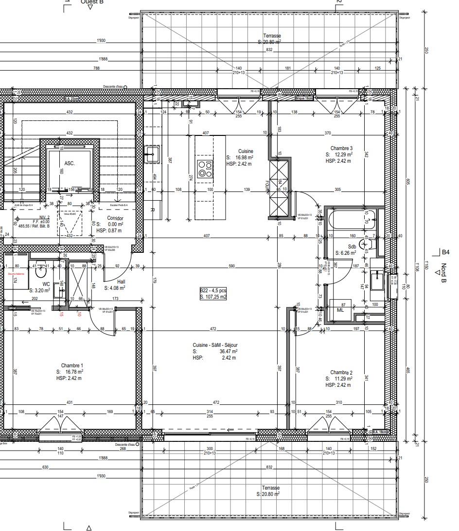 | B22 | 2ème | 4.5 | 109.21 m2 | 130.01 m2 | vendu | ||||