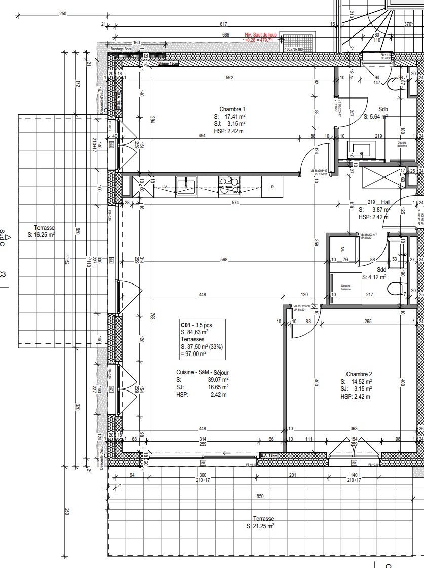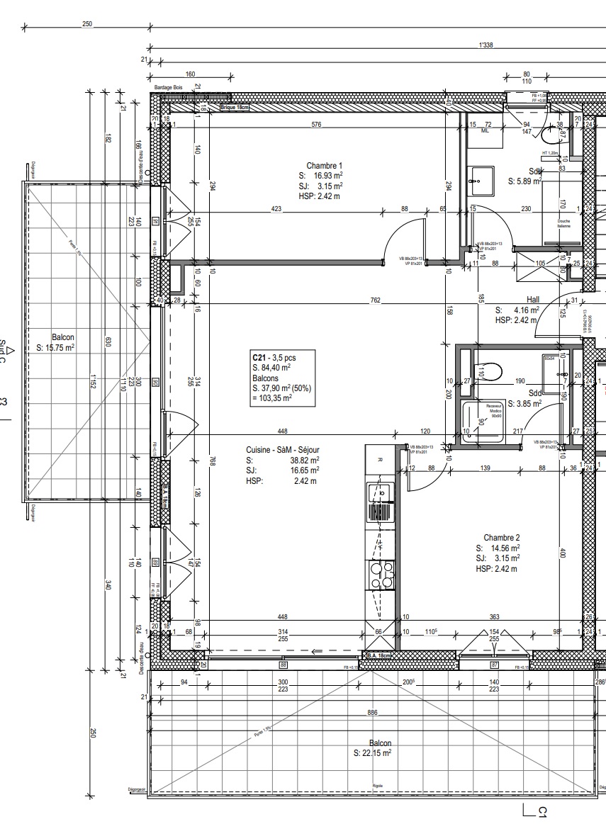 | C21 | 2ème | 3.5 | 87.85 m2 | 106.80 m2 | vendu | ||||