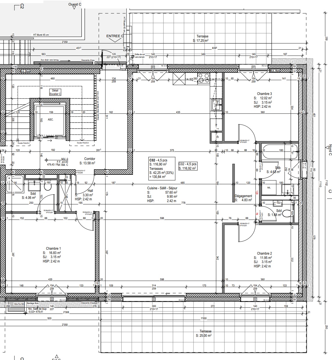| C02 | Rez | 4.5 | 121.00 m2 | 134.95 m2 | vendu | ||||