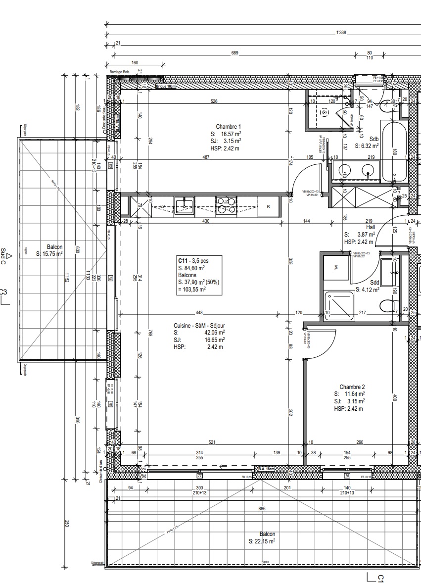 | C11 | 1er | 3.5 | 87.85 m2 | 106.80 m2 | vendu | ||||