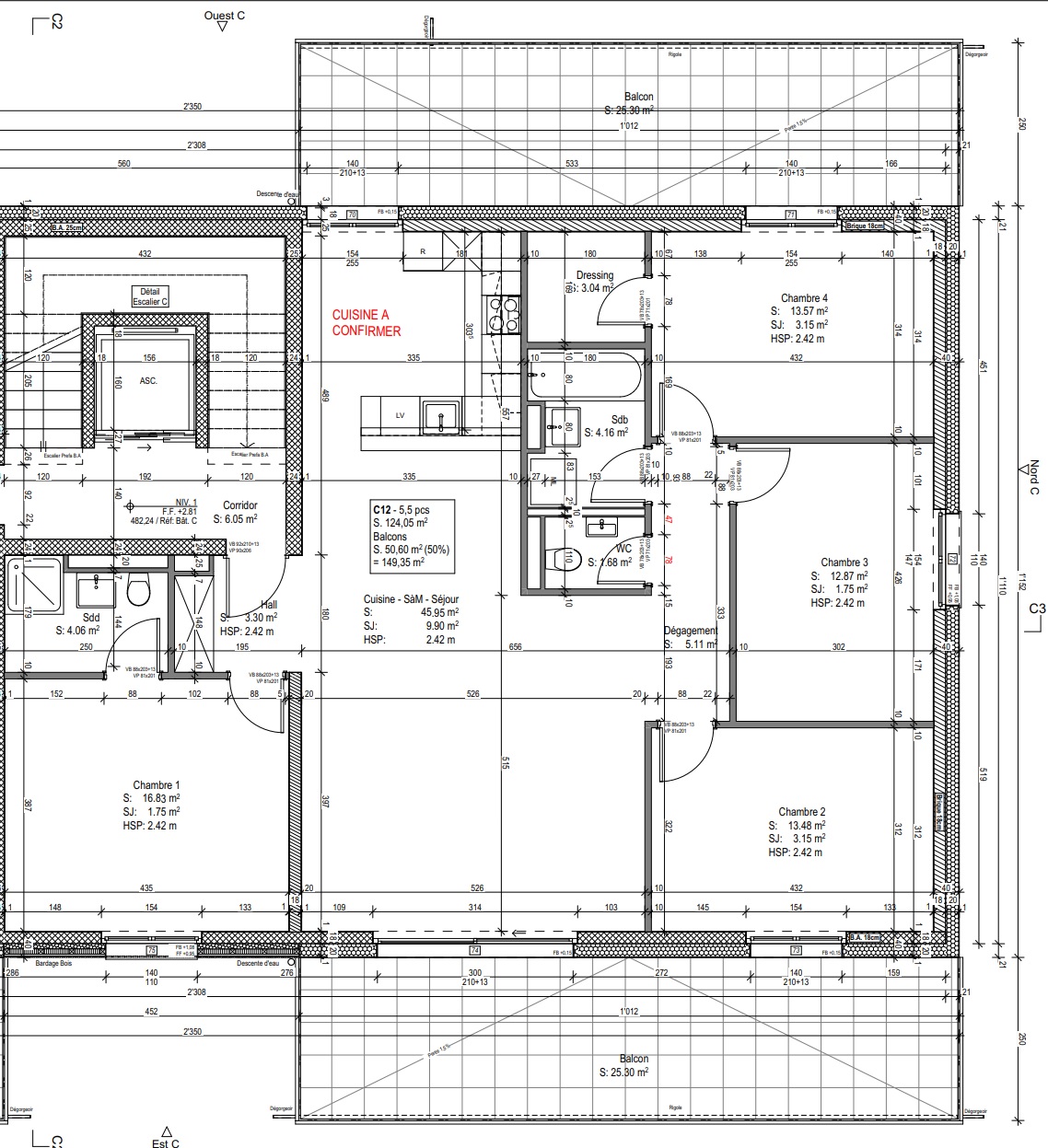 | C12 | 1er | 5.5 | 128.54 m2 | 153.84 m2 | vendu | ||||