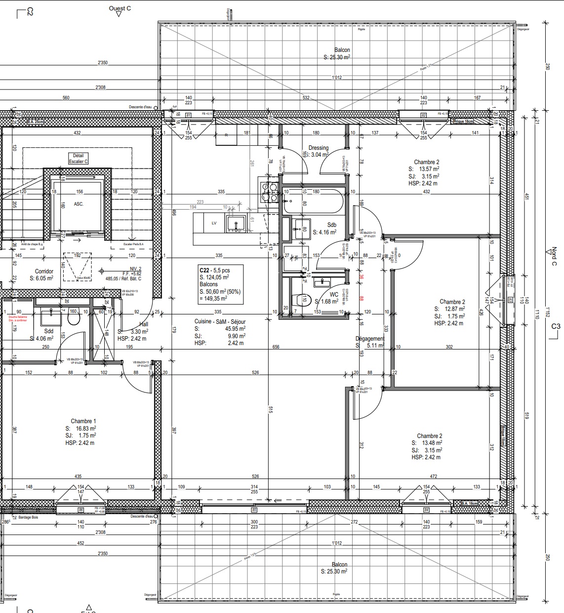 | C22 | 2ème | 5.5 | 128.54 m2 | 153.84 m2 | vendu | ||||