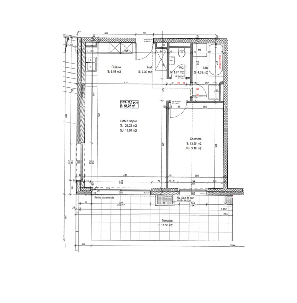 | D03 | Rez | 2.5 | 56.33 m2 | 62.08 m2 | vendu | ||||